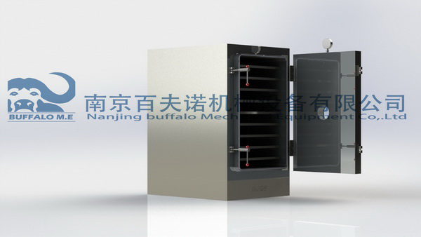凍干機板層結(jié)構(gòu),平整度高,溫度均勻。平板換熱器內(nèi)部通入循環(huán)熱水。料盤與換熱器表面貼合,通過傳導加熱,提高了干燥效率。